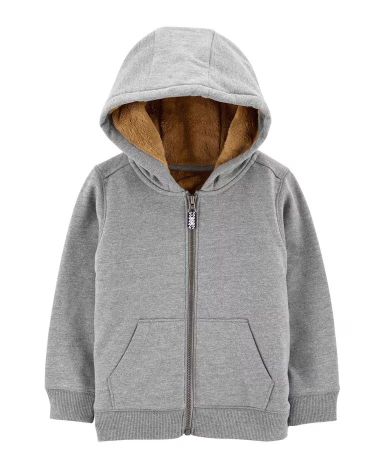 Discreto, quentinho, com estilo e confortável, o melhor dos mundos para seu baby você encontra aqui com o Blusão de moletom infantil com capuz e bolsos cinza | Carter's. Combine com uma calça de moletom da mesma cor para um conjuntinho. Aproveite!